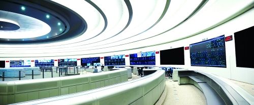 北京市軌道交通指揮中心,建筑面積59521平方米,是目前世界上集路網(wǎng)指揮調度和票務管理兩大體系為一體(俗稱“雙中心”),接入線路系統(tǒng)最多,集成化、網(wǎng)絡化、自動化程度最高的軌道交通指揮中心。該中心整合北京軌道交通各線路行車組織、電力控制、環(huán)境控制、自動售票等各個專業(yè)系統(tǒng)資源。作為軌道交通路網(wǎng)的中央?yún)f(xié)調角色,負責協(xié)調各條線路的控制中心及各運營主體。它具有綜合監(jiān)視、多軌道線路多交通系統(tǒng)運營協(xié)調、應急指揮、信息共享等職能。指揮中心對各線路的控制中心及線路運營只監(jiān)視但不控制線路設備。日常主要提供協(xié)調、協(xié)助功能;在非正常情況下,尤其是發(fā)生影響兩條及以上線路的緊急災害情況時,指揮中心將代表政府行使指揮權。