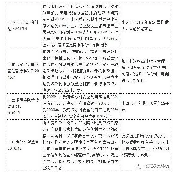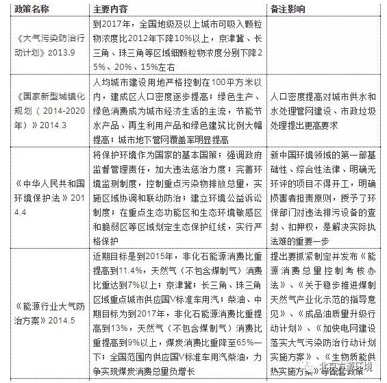 表格:環(huán)保行業(yè)政策梳理